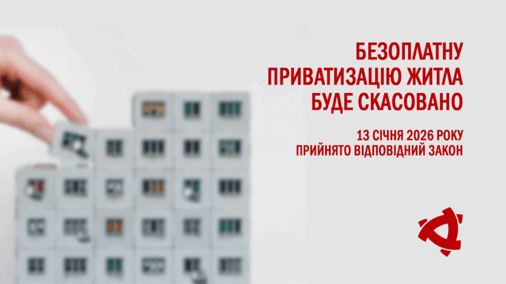 13 січня 2026 року Верховною Радою України прийнято Закон Про основні засади житлової політики, який серед іншого передбачає скасування процедури безлоплатної приватизації житла, а саме передбачає втрату чинності Законом України Про приватизацію державного житлового фонду, відповідно до положень якого вже більше 30 років здійснюється безоплатна приватизація квартир, будинків та кімнат у гуртожитках.