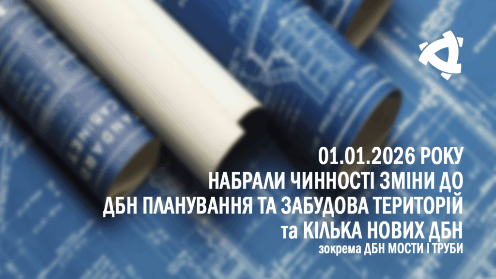 Також 01 січня 2026 року набрали чинності ДБН В.2.3-22:2025 «Мости і труби. Основні вимоги проєктування» (затверджені наказом Міністерства розвитку громад та територій України №1261 від 14.08.2025 року ).